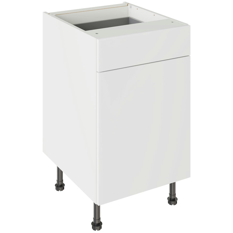 Assembling your kitchen cabinet has never been so easy. With this Kitchen Kit flatpack unit, you won't need to follow pages and pages of complicated instructions. Cabinets can be put together in lightning quick time with our cam and dowel quick-build design. The soft-close drawer runners ensure a smooth and silent action, adding a touch of luxury to your kitchen. Four adjustable legs make it easy to achieve maximum stability for base units, while a 49 mm service void allows you plenty of space for concealing pipes or wiring. Personalise your kitchen by choosing from a wide range of colours, sizes, and door styles. Whether you prefer the handleless J-Pull, the classic Shaker, or the modern Slab design, you can create a look you’ll love. * Delivered flat-packed with cabinet, door and hinges included * Cam and Dowel Quick-build design * Simply glue and click together to form a strong fixing - fast! * Soft Close Hafele drawer boxes. * Fully integrated soft-close hinges - no more doors slamming shut * 150 mm adjustable legs to ensure maximum stability * 49 mm rear service void for concealing pipes, wiring and other essentials * 18 mm MFC cabinet with 8 mm back for rigidity * FIRA Gold certification on doors and cabinets * Door handles, plinths, panels and other accessories sold separately | Kitchen Kit Slab Drawerline Base Cabinet Flatpack Supermatt 500mm in White