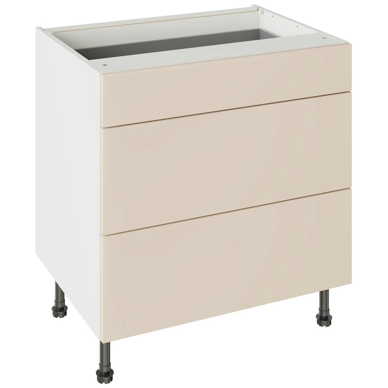 Kitchen Kit Slab Supergloss 3 Drawer Base Kitchen Cabinet Flatpack 800mm in Cashmere