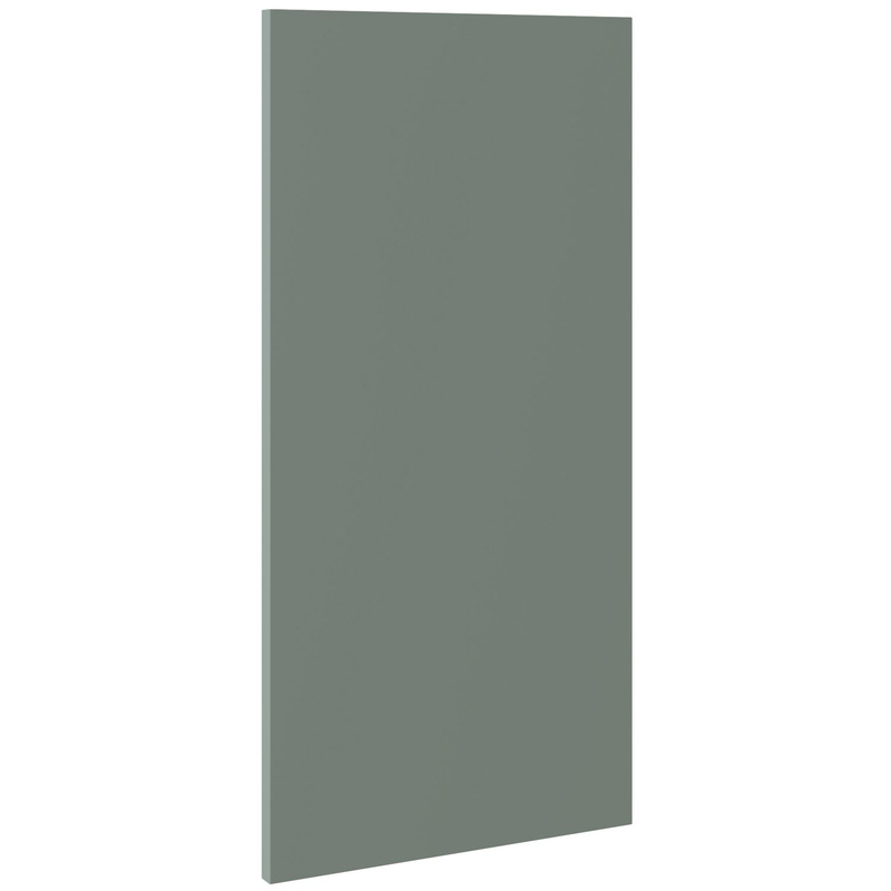 Assembling your kitchen cabinet has never been so easy. With this Kitchen Kit flatpack unit, you won't need to follow pages and pages of complicated instructions. Cabinets can be put together in lightning quick time with our cam and dowel quick-build design. This kitchen wall unit features a concealed adjustable hanging bracket, helping you customise your layout exactly the way you want it. An adjustable shelf gives you even more flexibility for storage, and the doors can be hinged on the left or right side to best suit your configuration. Soft-close hinges ensure a smooth and quiet closure - no more doors slamming shut. Personalise your kitchen by choosing from a wide range of colours, sizes, and door styles. Whether you prefer the handleless J-Pull, the classic Shaker, or the modern Slab design, you can create a look you’ll love. * Delivered flat-packed with cabinet, door and hinges included * Cam and Dowel Quick-build design * Simply glue and click together to form a strong fixing - fast! * Doors can be hinged on the left or right side to suit your configuration * Fully integrated soft-close hinges - no more doors slamming shut * Adjustable concealed hanging bracket for maximum customisation * Adjustable shelf to make the most of your storage space * 18 mm MFC cabinet with 8 mm back for rigidity * 18mm Door drilled ready to hang * FIRA Gold certification on doors and cabinets * Door handles, plinths, panels and other accessories sold separately | Kitchen Kit Slab Supermatt Wall End Panel 350mm in Agave Green