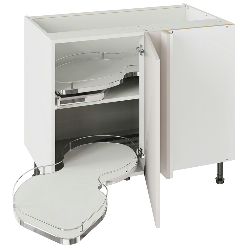 Assembling your kitchen cabinet has never been so easy. With this Kitchen Kit flatpack unit, you won't need to follow pages and pages of complicated instructions. Cabinets can be put together in lightning quick time with our cam and dowel quick-build design. Doors can be hinged on the left or right side of this kitchen unit to best suit your layout, with a soft-close function that ensures they'll never slam shut loudly again. Four adjustable legs make it easy to achieve maximum stability for base units, while a 49 mm service void allows you plenty of space for concealing pipes or wiring. Personalise your kitchen by choosing from a wide range of colours, sizes, and door styles. Whether you prefer the handleless J-Pull, the classic Shaker, or the modern Slab design, you can create a look you’ll love. * Delivered flat-packed with cabinet, door and hinges included * Cam and Dowel Quick-build design * Simply glue and click together to form a strong fixing - fast! * Doors can be hinged on the left or right side to suit your configuration * Fully integrated soft-close hinges - no more doors slamming shut * 150 mm adjustable legs to ensure maximum stability * 49 mm rear service void for concealing pipes, wiring and other essentials * 18 mm MFC cabinet with 8 mm back for rigidity * 18mm Door drilled ready to hang * FIRA Gold certification on doors and cabinets * Door handles, plinths, panels and other accessories sold separately | Kitchen Kit Value Slab Blind Corner Base Cabinet Matt with Dual-Handed Nuvola 1000mm Flatpack in Light Grey