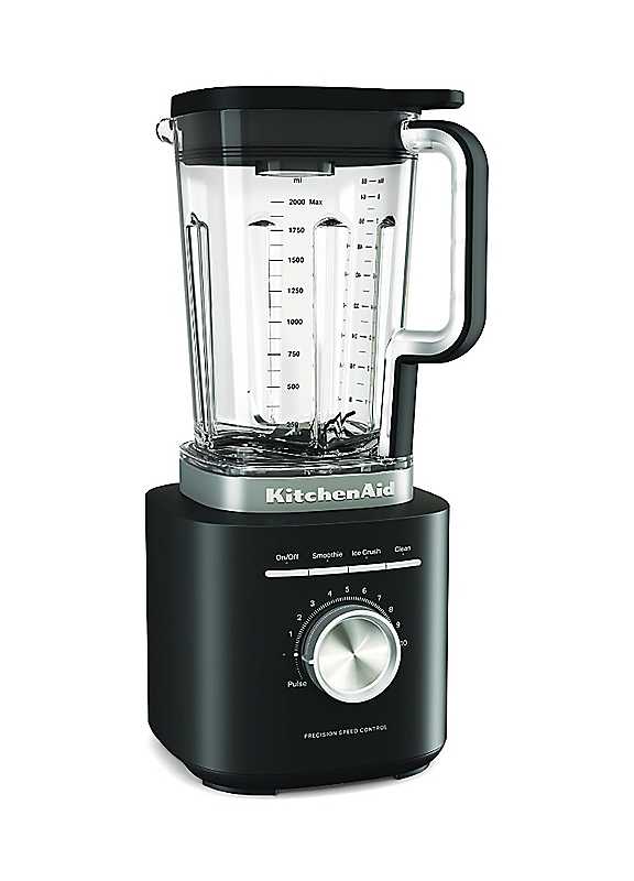 The KitchenAid Pure Power Blender helps craft the blends you want with a precision speed control knob. Use the pre-set 10 speeds, or twist the control knob to smoothly glide between speeds, finding the exact setting for your perfect texture. As well as the pre-set speeds, there are 3 pre-sets modes: Ice Crush, Smoothie, and Clean. The blender has powerful 360 asymmetrical blades which blend at different angles to break down the toughest ingredients, including ice and frozen foods. It comes with a BPA-free plastic jar for your sweet or savoury blends. The 2 L jar has a vent in the lid, to release steam from hot ingredients, and also to allow easy adding of ingredients into the jar.For hot liquid do not exceed 1.2LPrecision control with 10 speedsPowerful ice crushing blades3 Pre-sets + PulseSmoothie cycleTexture controlHot & cold ingredients with vented lidMake what you crave with complete control3 Year guaranteeWhat's in the box: 1x Solid BPA-free plastic base, 1x 2L BPA-free plastic blender jar, 1x Vented blender jar lidDimensions approx. 41.7H x 26W x 30.2D cm
