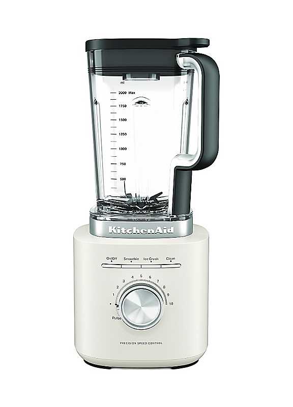 The KitchenAid Pure Power Blender helps craft the blends you want with a precision speed control knob. Use the pre-set 10 speeds, or twist the control knob to smoothly glide between speeds, finding the exact setting for your perfect texture. As well as the pre-set speeds, there are 3 pre-sets modes: Ice Crush, Smoothie, and Clean. The blender has powerful 360 asymmetrical blades which blend at different angles to break down the toughest ingredients, including ice and frozen foods. It comes with a BPA-free plastic jar for your sweet or savoury blends. The 2L jar has a vent in the lid, to release steam from hot ingredients, and also to allow easy adding of ingredients into the jar.For hot liquid do not exceed 1.2LPrecision control with 10 speedsPowerful ice crushing blades3 Pre-sets + PulseSmoothie cycleTexture controlHot & cold ingredients with vented lidMake what you crave with complete control3 Year guaranteeWhat's in the box: 1x Solid BPA-free plastic base, 1x 2L BPA-free plastic blender jar, 1x Vented blender jar lidDimensions approx. 41.7H x 26W x 30.2D cm