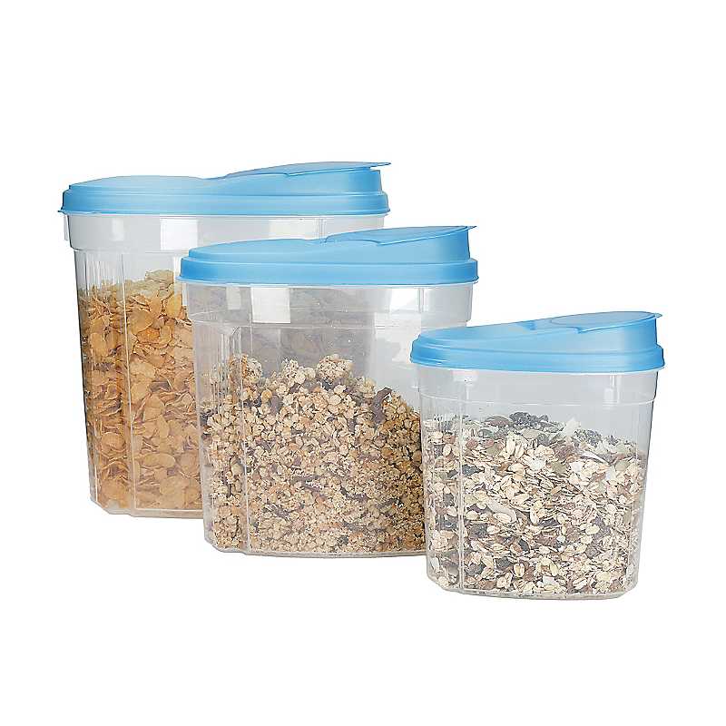 Simple, practical and versatile, these KitchenCraft dry food storage containers are ideal for kitchen cupboards and countertops. This set includes three containers in three sizes - 4.5 litres, 2 litres and 1.2 litres. They feature secure clip-top lids that help to keep dry ingredients fresh and neatly stored. They help to keep moisture out too, so they're also ideal for storing washing powders and other cleaning supplies. Ridged sides make pouring into bowls or washing machine drawers easy and mess free. Each container is made of durable BPA-free plastic with a clear finish. It makes identifying what's stored inside them really easy. And it makes cleaning them simple, by hand or in the dishwasher. KitchenCraft Storage Set Features: For dry goods only Large container (4.5 litres) approx. 28.5 x 26 x 12.5 cm (11 x 10 x 5 in) Medium container (2 litres) approx. 24.5 x 21.5 x 11 cm (9½ x 8½ x 4½ in) Small container (1.2 litres) approx. 19.5 x 16.5 x 9 cm (7½ x 6½ x 3½ in) BPA-free plastic Dishwasher safe