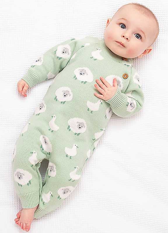 Kite Baby Baa Baa Quack Knit Organic Cotton Romper - Green - Size 1m
