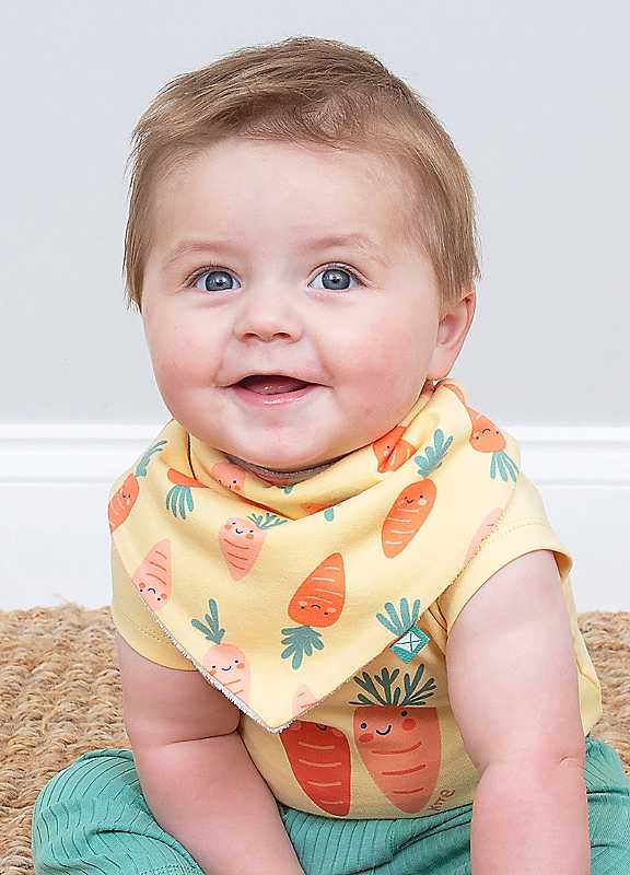 A feeding time essential, perfect for mopping up all those little spills and dribbles. Kite's towelling-backed bibs are the ultimate practical companion. Pair with their fun Happy Carrot range for an adorable look.Proud to be certified to the Global Organic Textile Standard (GOTS). GOTS is the leading organic textile standard and companies must meet strict environmental and social criteria to become certified. All the elements in Kite's supply chain - ranging from the cotton growers to the embroiderers - have been successfully inspected to ensure they meet comprehensive organic and socially responsible standards.Single jersey with a little bit of stretchHappy carrot all over printAdjustable popper openingIron on reverse at a low temperatureMachine washable at 40°C, or at 30°C to be kinder to the planetFront: 95% Organic Cotton, 5% ElastaneTowelling: 80% Organic Cotton, 20% Elastane