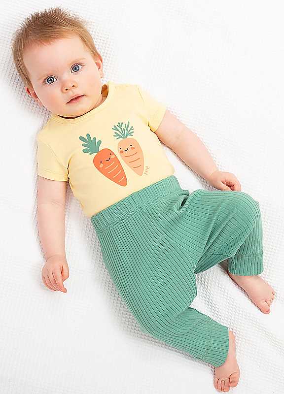 Kite's beautiful bodysuits are wonderfully soft and comfy, making them perfect for every day. Worn as a baby vest or a body-tee, this looks great worn as a t-shirt with their coordinating leggings. The handy shoulder popper opening makes change time easy-peasy too.Proud to be certified to the Global Organic Textile Standard (GOTS). GOTS is the leading organic textile standard and companies must meet strict environmental and social criteria to become certified. All the elements in Kite's supply chain - ranging from the cotton growers to the embroiderers - have been successfully inspected to ensure they meet comprehensive organic and socially responsible standards.Single jersey with a little bit of stretchHappy carrot appliqu©OEKO-TEX Standard 100 (Product Class I) appliqu© backingPopper crotch & shoulder openingMachine washable at 40°C, or at 30°C to be kinder to the planetWash inside out & iron on reverse at a low temperature95% Organic Cotton, 5% Elastane