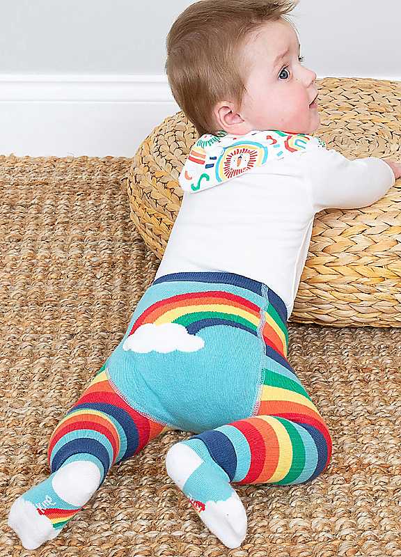 Meet Kite's super-soft knitted leggings featuring a rainbow stripe design. For ease and comfort, pull them on with a t-shirt, baby vest or dress. These knitted leggings are a great everyday option for little ones on the go.Proud to be certified to the Global Organic Textile Standard (GOTS). GOTS is the leading organic textile standard and companies must meet strict environmental and social criteria to become certified. All the elements in Kite's supply chain - ranging from the cotton growers to the embroiderers - have been successfully inspected to ensure they meet comprehensive organic and socially responsible standards.Rainbow knitted stripeRainbow seat designMachine washable at 40°C, or at 30°C to be kinder to the planetWash inside out & iron on reverse at a low temperature90% Organic Cotton, 8% Polyamide, 2% Elastane