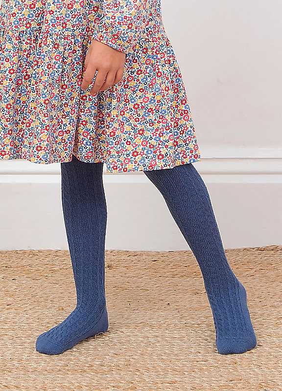 Discover Kite's super-soft organic cotton tights, perfectly designed to coordinate with this season's collection. Featuring Kite's signature cable knit design in classic navy blue, these stylish tights are the ideal finishing touch to any outfit - and they make a lovely gift too.Key Features:Navy blue cable knitSoft, elasticated waistband for comfortEthical Credentials:Proudly certified to the Global Organic Textile Standard (GOTS) - the leading standard for organic textiles. GOTS certification ensures that every stage of Kite's supply chain, from cotton growers to embroiderers, meets strict environmental and social criteria.Machine washable at 40°C, or at 30°C to be kinder to the planet90% Organic Cotton, 8% Polyamide, 2% Elastane