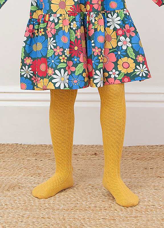 Discover kite's super-soft organic cotton tights that coordinate perfectly with this season's collection. Featuring kite's fab cable knit design in ochre yellow, these great tights are the finishing touch to any outfit and make a great gift idea too.Proud to be certified to the global organic textile standard (GOTS). GOTS is the leading organic textile standard and companies must meet strict environmental and social criteria to become certified. All the elements in kite's supply chain ranging from the cotton growers to the embroiderers have been successfully inspected to ensure they meet comprehensive organic and socially responsible standards.Elasticated waistbandMade in TurkeyMachine washable at 40°C, or at 30°C to be kinder to the planet90% Organic Cotton, 8% Polyamide, 2% Elastane