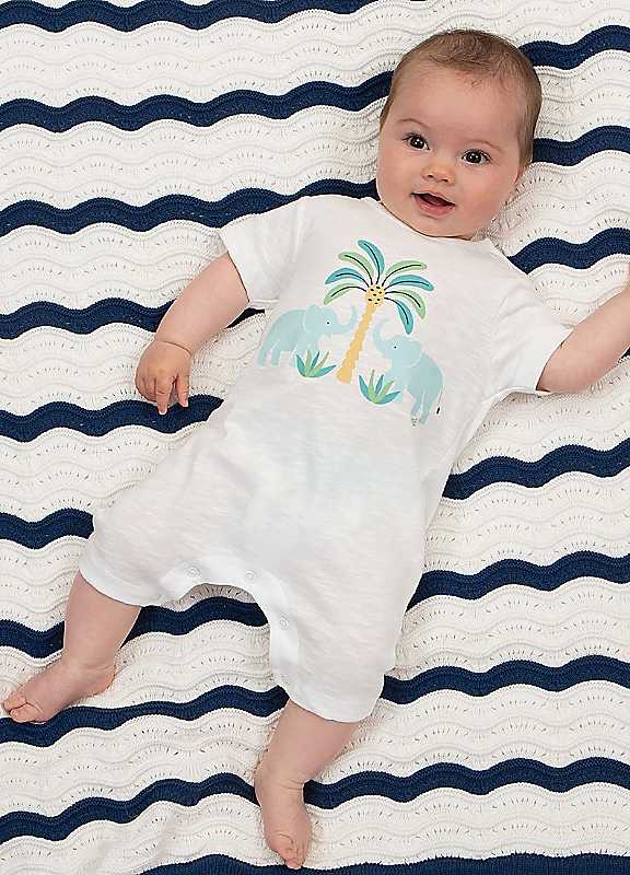 This gorgeous Coco Ele romper is the perfect choice this summer for your little one. Made from soft and breathable cotton slub, this piece is designed for comfort and coolness. Complete with a lovely elephant and palm tree print, it will be your go-to for warm summer days.Machine washable at 40 degrees, or at 30 degrees to be kinder to the planet100% cotton | summer casual romper, short sleeve romper, cute white romper, animal print romper, 100 cotton romper, short one piece