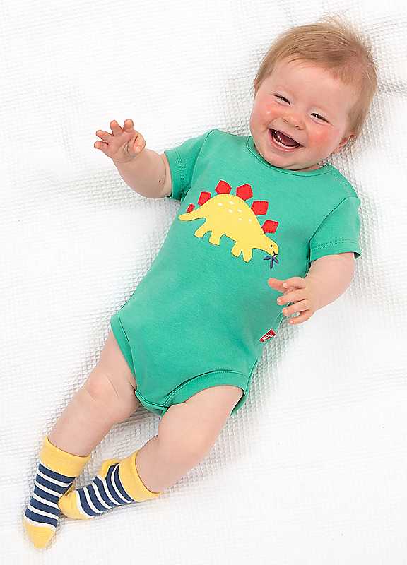 Roar! Kite's beautiful bodysuits are wonderfully soft and comfy, making them perfect for every day. This short-sleeved baby vest with a cool dino appliqu© design looks great worn as a t-shirt or with coordinating knit leggings. Ideal for naptimes too, and the handy shoulder popper opening makes change time easy peasy.Machine washable at 40 degrees, or at 30 degrees to be kinder to the planet100% cotton