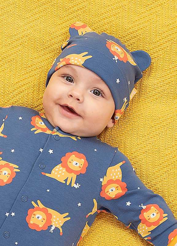 Keep your little one snug and cosy with this perfect organic cotton hat. Featuring kite's sweet lion and mouse print with a turn-up and cute ears.Proud to be certified to the global organic textile standard (GOTS). GOTS is the leading organic textile standard and companies must meet strict environmental and social criteria to become certified. All the elements in kite's supply chain ranging from the cotton growers to the embroiderers have been successfully inspected to ensure they meet comprehensive organic and socially responsible standards.Single jersey with a little bit of stretch (180-190 gsm)Lion & mouse all-over printMade in Turkey95% Organic Cotton, 5% Elastane