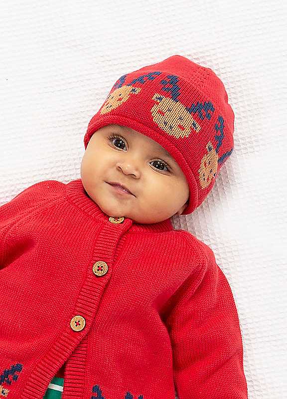 Kite Kids Mr Moose Knit Organic Cotton Hat - Red - Size 12/24MONTH