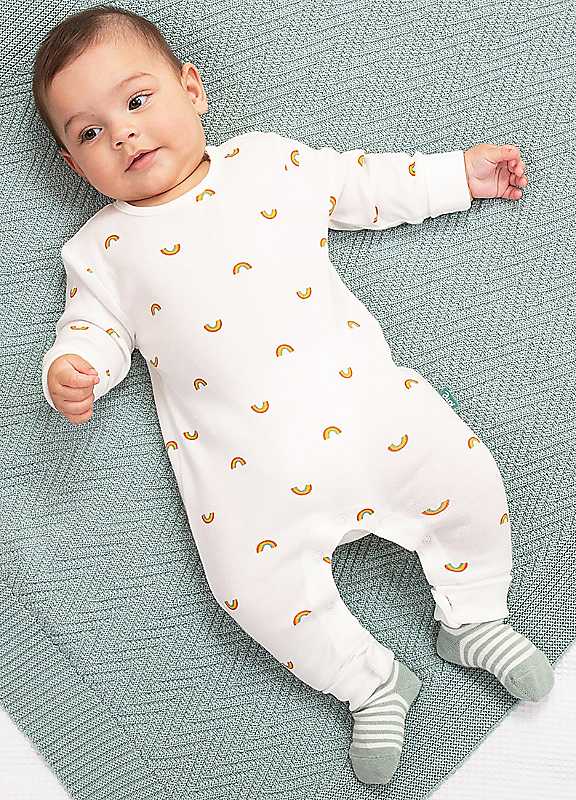 Kite's stripy organic cotton romper, in the fun little rainbow all-over print, makes the cutest outfit for your little one. Designed for sleepy time and playtime, this option offers comfort day and night. The fold-back cuffs at the sleeves and legs can unfold as your little one grows, ensuring a long-lasting fit and lots of extra wears.Proud to be certified to the Global Organic Textile Standard (GOTS). GOTS is the leading organic textile standard and companies must meet strict environmental and social criteria to become certified. All the elements in Kite's supply chain - ranging from the cotton growers to the embroiderers - have been successfully inspected to ensure they meet comprehensive organic and socially responsible standards.Little rainbow all-over print1x1 rib (180-190 gsm)Popper crotch & shoulder openingLong sleevedCream ribbed fold back cuffsRound neckGrowing cuffsMade in TurkeyMachine washable at 40°C, or at 30°C to be kinder to the planet100% Organic Cotton
