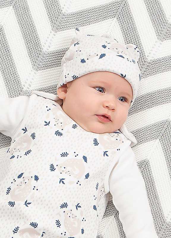 Keep your little one snug and cosy with this perfect cotton hat. Featuring a charming Snuggle Bear print with a turn-up and cute ears.Machine washable at 40 degrees, or at 30 degrees to be kinder to the planet100% cotton
