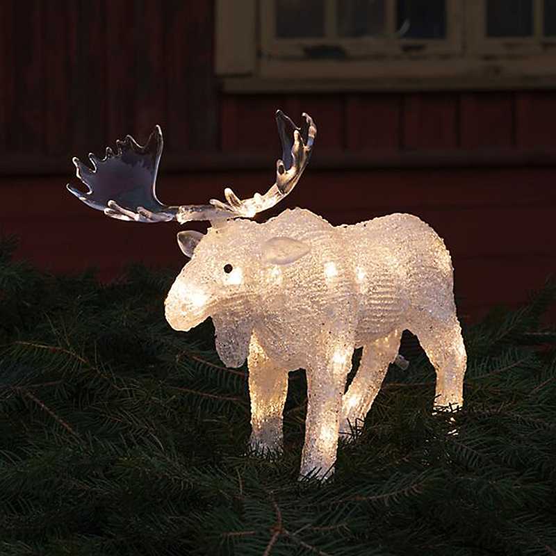 This outdoor acrylic moose is 21cm tall and made from robust spun acrylic lit by 24 warm white LEDs. Battery powered, using 4xAA (not inc) in an IP54 outdoor battery box this moose can be placed anywhere in the home and garden, under the tree, in the porch, lighting a child's bedroom, your imagination is the only limit. Brand: Konstsmide Requires 4 x AA batteries (not included) For outdoors 24 warm white LEDs Dimensions approx. 21 x 27 x 17 cm | warm white christmas lights, acrylic led light, battery powered outdoor, led christmas lights, outdoor led lights, battery operated christmas, outdoor christmas lights, animal light, warm white outdoor lights