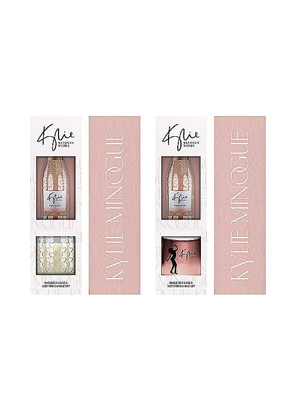 Kylie Minogue Prosecco Ros & Candle Bundle (1 x Prosecco & Heart-shaped Debossed Candle & 1 x Prosecco & Metallic Candle)