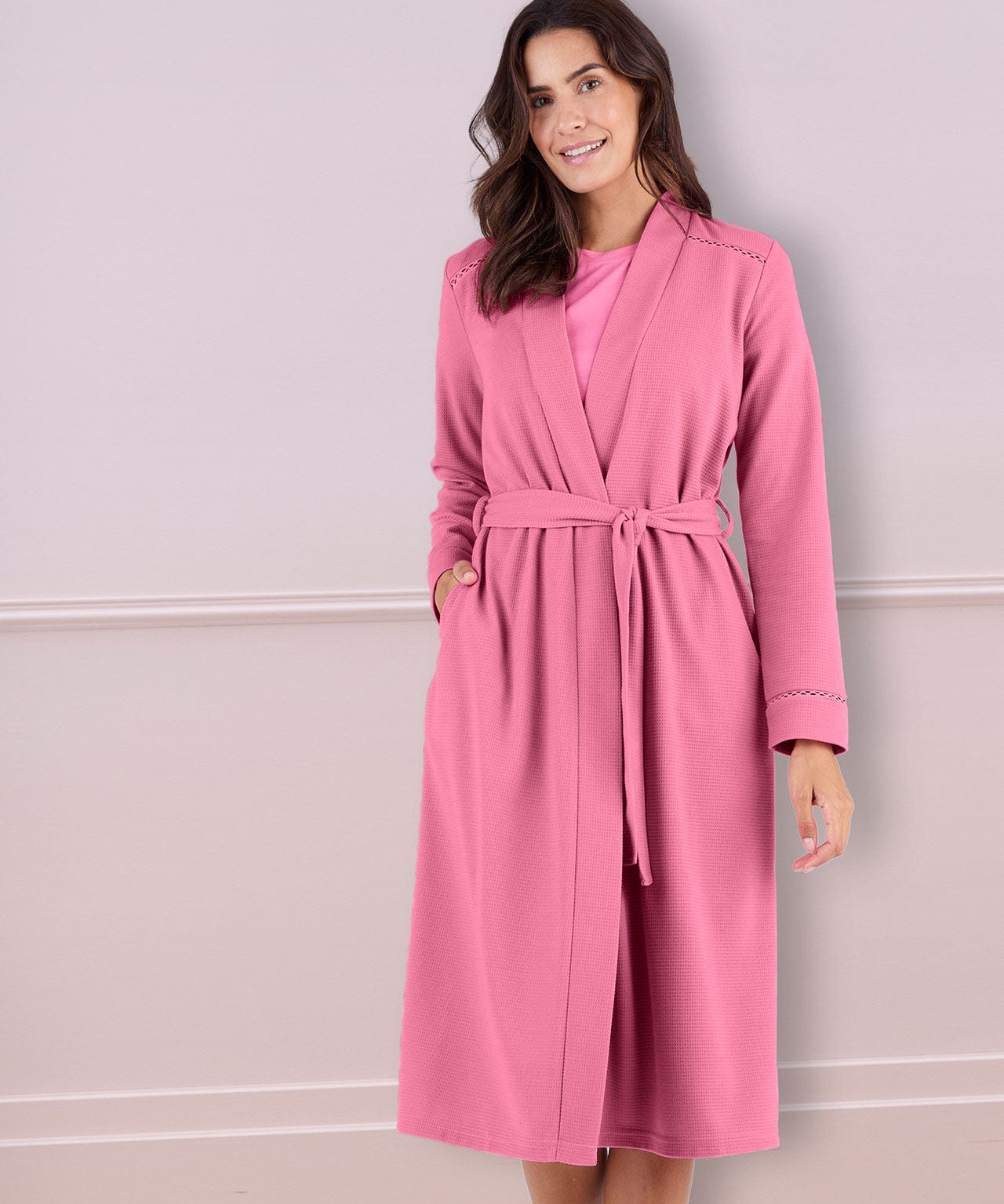 Ladies' Belted Jersey Dressing Gown, Rose Pink, 10/12