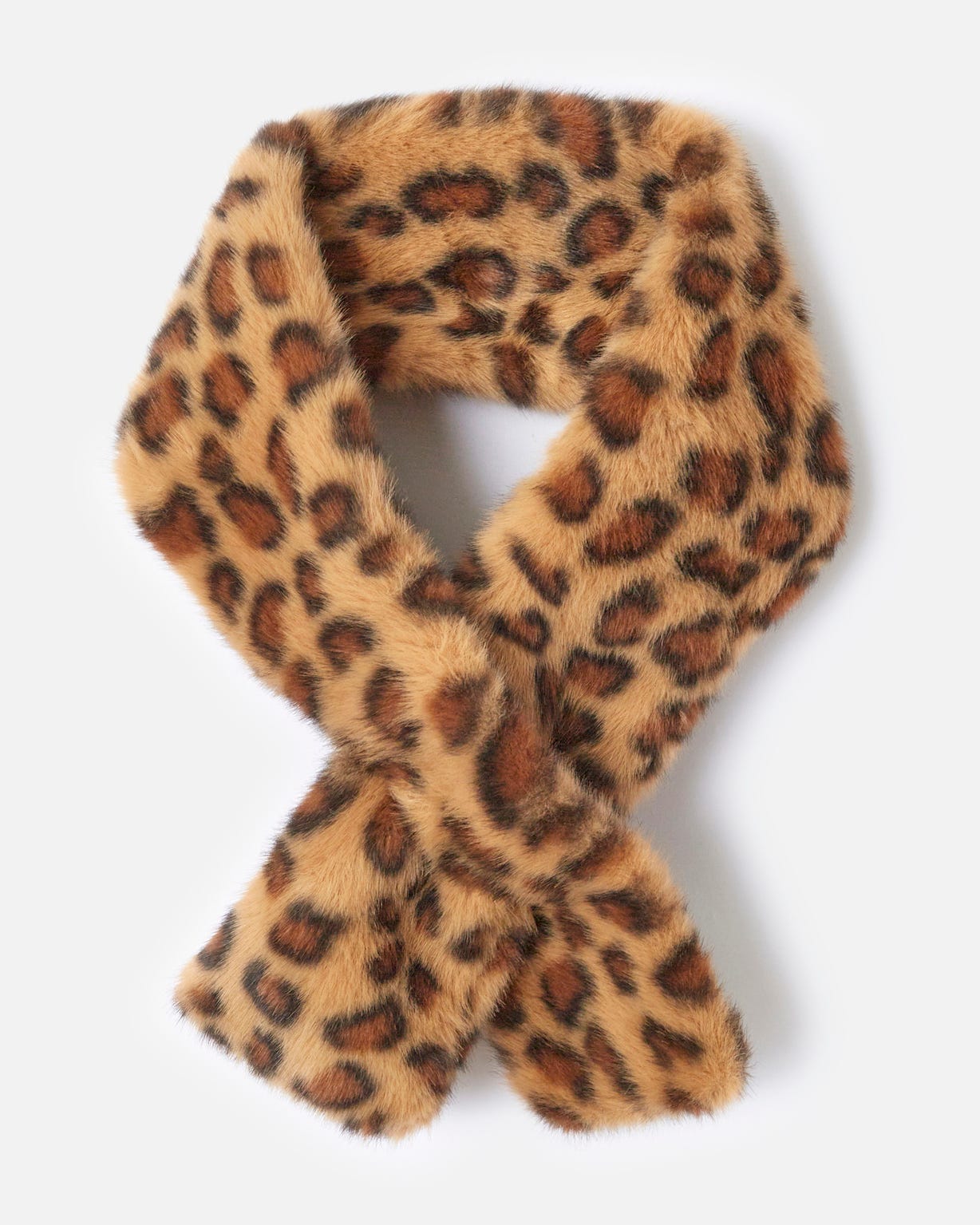 You'll love how soft and cosy this faux fur leopard print scarf is. And because it threads through, it's neat, easy to wear and stylish. Great with knitwear as well as your favourite coats and jackets, for day or evening.
