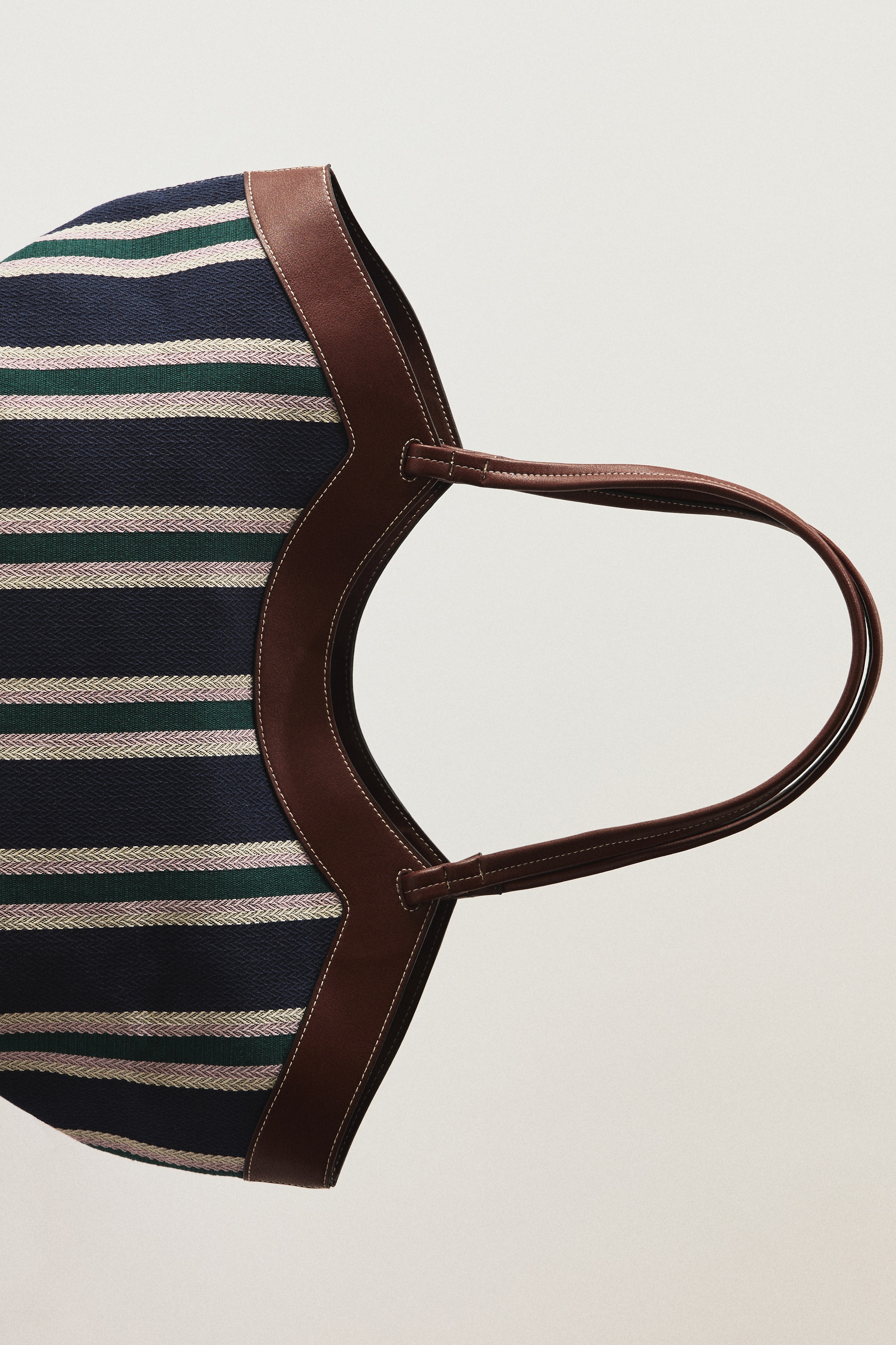 Ladies - Navy blue/Striped Herringbone shopper - H&M