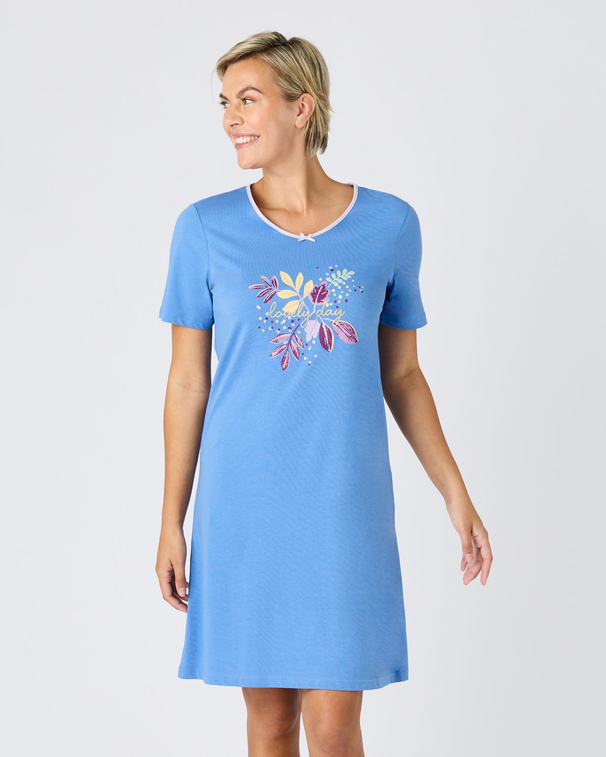 Ladies' Pack of 3 Cotton Jersey Nightdresses, Mid Blue Assorted, 10/12 38"