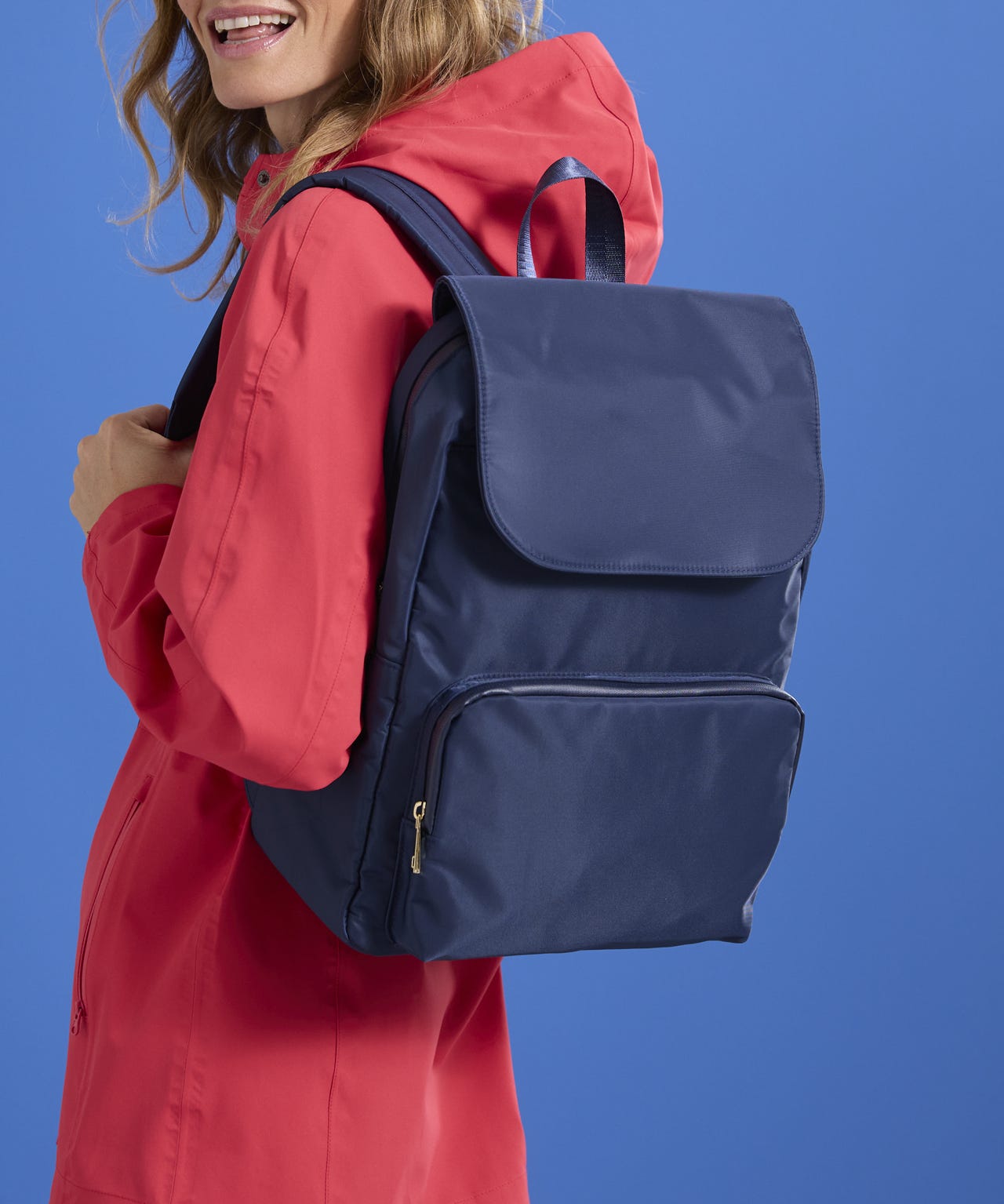 When you're off to work, travelling or out for the day, our water-repellent rucksack has you covered. Simple and stylish, it has adjustable shoulder straps for a comfortable carry, front zip pocket, main zip-up compartment, an inside pocket and space for your laptop. Lined for quality, with smart gold tone hardware. 100% Polyamide. Lining: 100% Polyester. Size: 30x40x13cm approx.