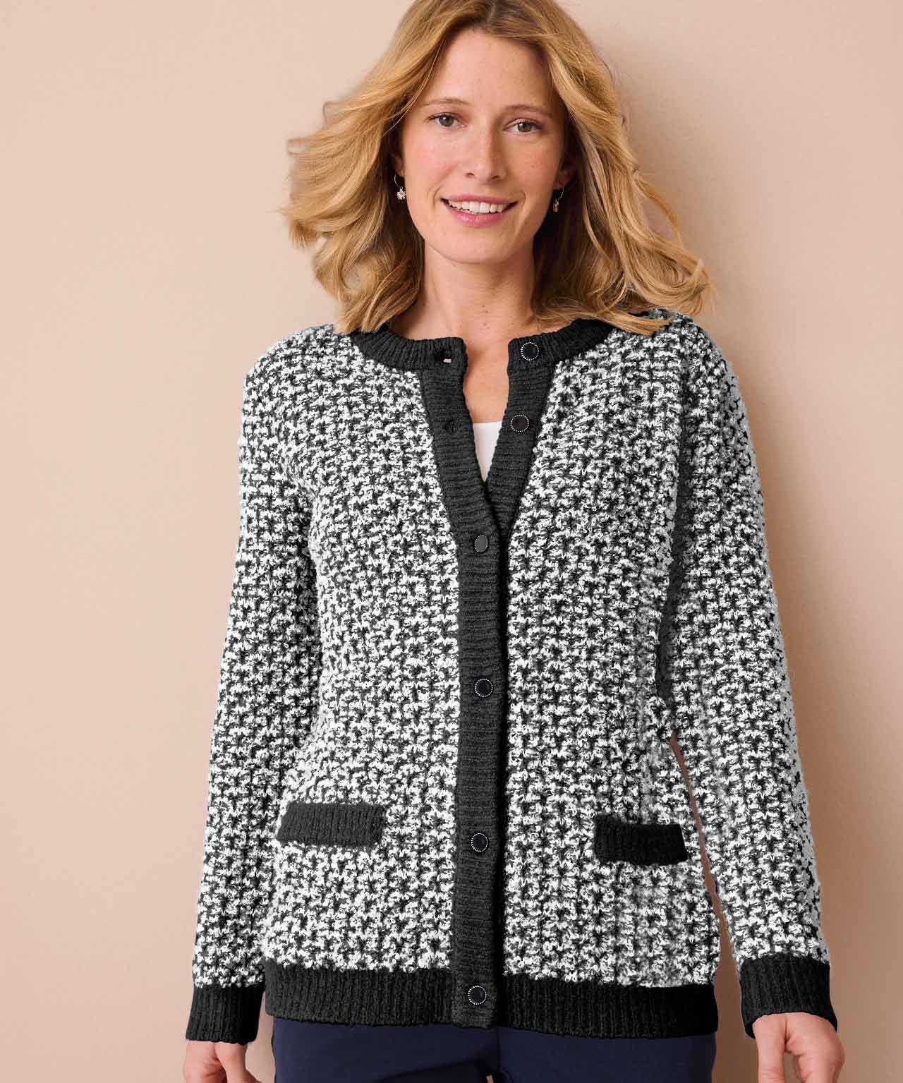 Our textured cardigan with a timeless elegant look, is a great alternative to a tailored jacket for cosy comfort and classic style. With wool for quality and wonderful warmth, finished with contrast rib detail, front pockets and buttons for a modern twist. Regular fit. 62% Acrylic, 24% Wool, 13% Polyamide, 1% Elastane. Length: 61cm (24") approx.