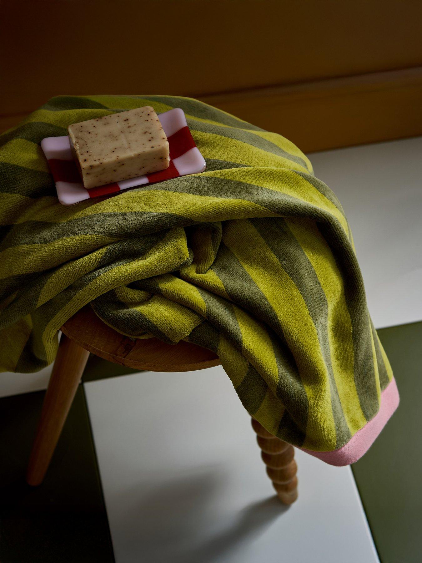 Grass Stripe Towel Collection Multi A Woven Yarn Dye Vertical Candy Stripe Design In Rich Greens Trimmed With A Pink Hem. Terry Velour, 100% Cotton. Depth: 1 Cm Height: 130 Cm Material Content: 100% Cotton Towel Type: Bath Towel Washing Instructions: Machine Washable Width: 70 Cm Yarn Dye Jacquard 500 Gsm