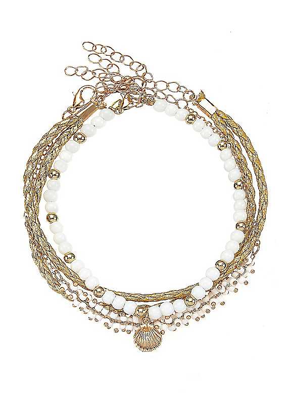 This Pack of 3 Boho Style Beaded Anklets adds a touch of elegance to any outfit with its pearl gem stone, gold shell pendant and three individual chains. Made of metal, glass and faux leather, these anklets are perfect for enhancing your look with trainers or sandals.Pack of 3Glass, Faux Leather, MetalLength approx. 23 cm | ankle bracelet chain, boho ankle bracelet, bracelet anklet set, glass bead bracelets, boho beaded bracelets, beaded anklet bracelet, leather beaded bracelets, beaded bracelet sets, pack of bracelets, bracelets boho, bohemian beaded bracelets, boho bracelet sets, gold chain ankle bracelet, faux leather bracelet, leather bracelet gold