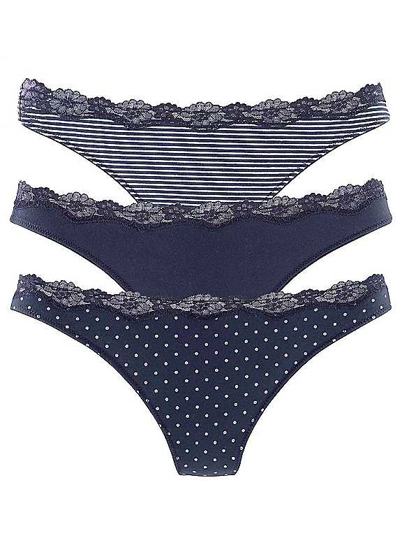 LASCANA Pack of 3 Thongs - Navy Spot - Size 14/16