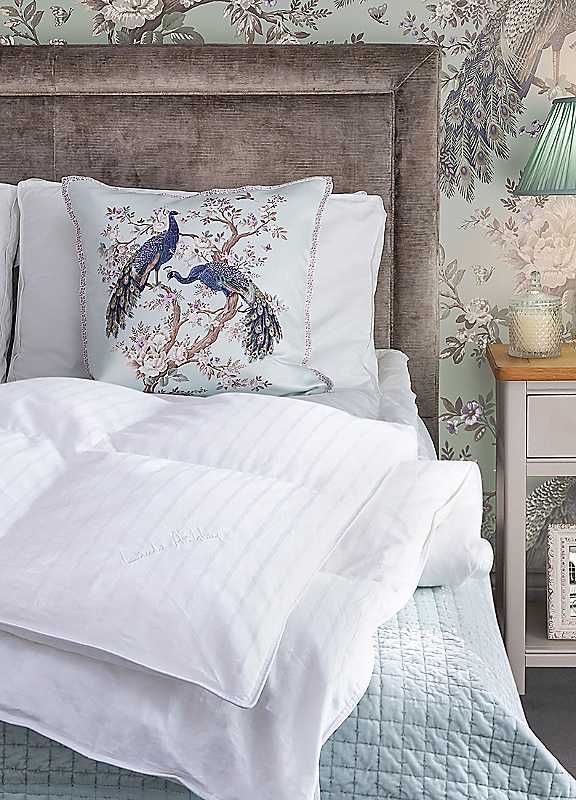 Luxuriate in the delightfully decadent comfort of Duck Feather and Down all night long with this 13.5 tog duvet by Laura Ashley.Inside the premium 300 thread count satin striped cover is a wonderful filling of white duck feather and down. Not only does this keep you nice and warm through the whole night, but it's also lightweight and breathable, so you don't need to worry about overheating, and fidgety sleepers won't get tied up in the covers as they sleep. With a 13.5 tog rating, this duvet is perfect for keeping you cosy when the nights are colder.Microfresh protection provides lifelong freshness, and it's finished with piped edging, as well as Laura Ashley branded embroidery for added elegance.300 Thread count satin stripeFilling: 80% Duck feather, 20% Down100% Cotton microfresh treated coverAnti-Allergy13.5 TogBeautifully finished with Laura Ashley embroidered signature & pipingBaffle box stitchingMicrofresh protection for lifelong freshnessRe-usable cotton bag with hang tagDry clean & line dry