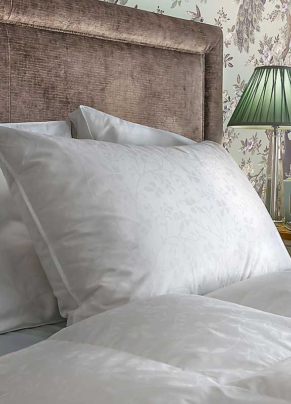 Encouraging a wonderful nights sleep, luxuriate in ultimate comfort with this Goose feather and down with this pillow by Laura Ashley.The premium 300 thread count satin striped cover plays host to a superior filling of goose feather and down. This sublime blend is soft, lofty and incredibly inviting, so you'll love slipping under the covers and drifting off to a truly indulgent slumber.Microfresh protection provides lifelong freshness, and it's finished with piped edging, as well as Laura Ashley branded embroidery for added elegance.300 Thread count jacquardFilling: 80% Goose feather, 20% Down100% Cotton microfresh treated coverAnti-AllergyBaffle box stitchingBeautifully finished with Laura Ashley embroidered signature & pipingMicrofresh protection for lifelong freshnessRe-usable cotton bag with hang tagDry clean & line drySize approx. 48 x 74 cm