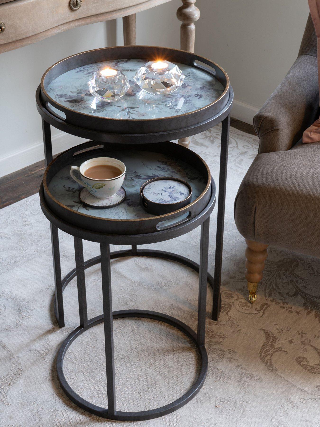 Laura Ashley Linlithgow Set Of 2 Side Tray Tables - Grey -