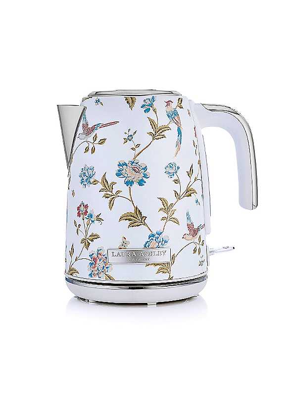 Enjoy a delicious morning brew or coffee with this Jug Kettle from Laura Ashley. The water level gauge will let you see the water level, so you only boil what water you need. The illuminated on/off switch will indicate when the kettle has finished boiling, whilst the perfect pour spout is great for all round easy use so you can avoid any unnecessary spillages. LARGE CAPACITY: At 1.7 Litres, this stunning kettle easily allows you to make up to seven cups of your favourite beverage OVERHEAT PROTECTION: Our fast boil electric kettle contains a concealed heating element with a safety feature. That will not allow the water to boil dry if it's accidentally left unattended for an extended period of time 360-DEGREE SWIVEL BASE: The 360 degree swivel base offers manoeuvrability, making it easy to use whether you are left or right handed CHINA ROSE PATTERENED DESIGN: Your Laura Ashley Kettle features the stunning hand-applied Elveden print. Each kettle is hand decorated and finished with a high-grade gloss UV coating to ensure it looks pristine day in day out. The Elveden print itself took inspiration from the Summer Palace design, launching in the 1980s and remains popular to this very day GUARANTEE: 2 year warranty and extended via the MyVQ website Dimensions: 28H x 25.9W x 19.5D cm