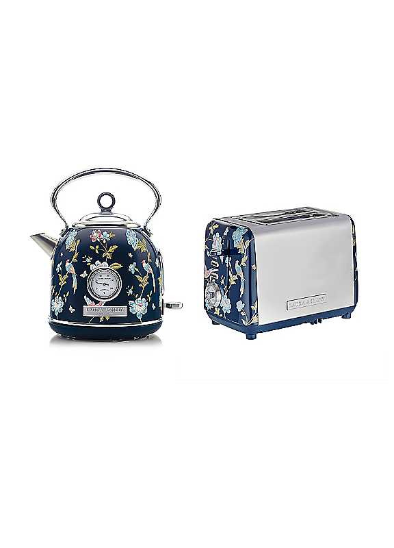 Laura Ashley VQ x Kitchen Set, 1.7L Dome Kettle & 2 Slice Toaster - Elveden Navy