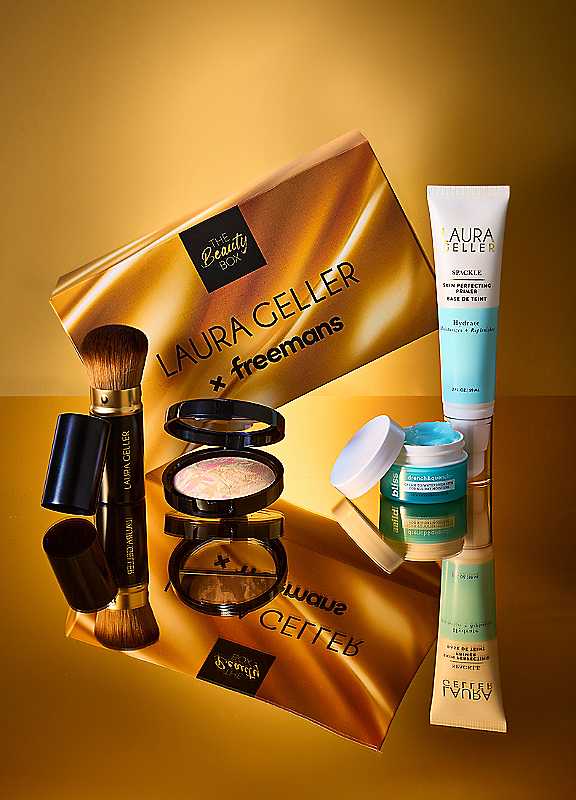 Discover flawless, effortless beauty with the exclusive Freemans x Laura Geller Beauty Box, available only at Freemans. This limited-edition collection brings together four makeup and skincare heroes, offering outstanding value with £100 worth of products for just £49 - a saving of £51!Featuring three best-selling Laura Geller favourites plus a deluxe skincare treat from Bliss, this beauty box is designed to perfect your complexion from prep to finish, with everything you need to achieve a healthy and radiant finish. Thoughtfully curated icons for everyday confidence, this exclusive edit makes creating your ideal base effortless. It's the ultimate choice whether you're refreshing your everyday routine, discovering Laura Geller for the first time, or treating someone special.Inside, you'll find:Laura Geller Airbrush Kabuki Brush (Worth £22)This compact and dense brush is designed to pair perfectly with any complexion product. Whether cream or powder, the ultra-soft Airbrush Kabuki Brush evenly buffs in products for a seamless finish that looks like your skin but better. Due to the retractable cover, the bristles can be controlled to vary in density, to deliver an airbrushed finish in your desired coverage level.Laura Geller Spackle Skin Perfecting Primer: Hydrate 59ml (Worth £36)This iconic primer works to hydrate, smooth and prep the skin, helping makeup last longer while leaving a fresh, radiant base. Formulated with hyaluronic acid and squalene, this nourishing formula acts as both a primer and a moisturiser to brighten and replenish the skin for a healthier, suppler complexion. After applying, the primer smooths and blurs the look of pores and fine lines. It creates the perfect base for your foundation without disrupting it, creating a smooth canvas for improved foundation application and wear, and keep your face feeling fresh all day!Laura Geller Baked Balance-n-Brighten Colour Correcting Foundation 9g (Worth £36)Balance your skin tone and brighten your day. The iconic, weightless formula is baked for 24 hours and hand-finished in Italy, giving you the easy application of a powder with the benefits of a cream. Colour correcting swirls of pigments neutralise hyperpigmentation and blemishes, to even out the skin for a flawless finish that lasts all day. Perfect for those with redness in the skin, Laura Geller Baked Balance-n-Brighten was the first foundation to earn a seal of approval from the National Psoriasis Foundation. Available in 9 shades, so you can find your perfect match.Bliss Drench & Quench All-Day Moisturizer 15ml (Worth £6)Thirsty? Quench de-hydrated skin with this weightless moisturiser, formulated with four types of hyaluronic acid to provide deep hydration and boost elasticity in the skin. The cream-to-water texture reduces water loss to strengthen the skin barrier, prevent dryness and flaking, leaving you with intense hydration and a dewy glow all day long. Transform your complexion from parched to plump.