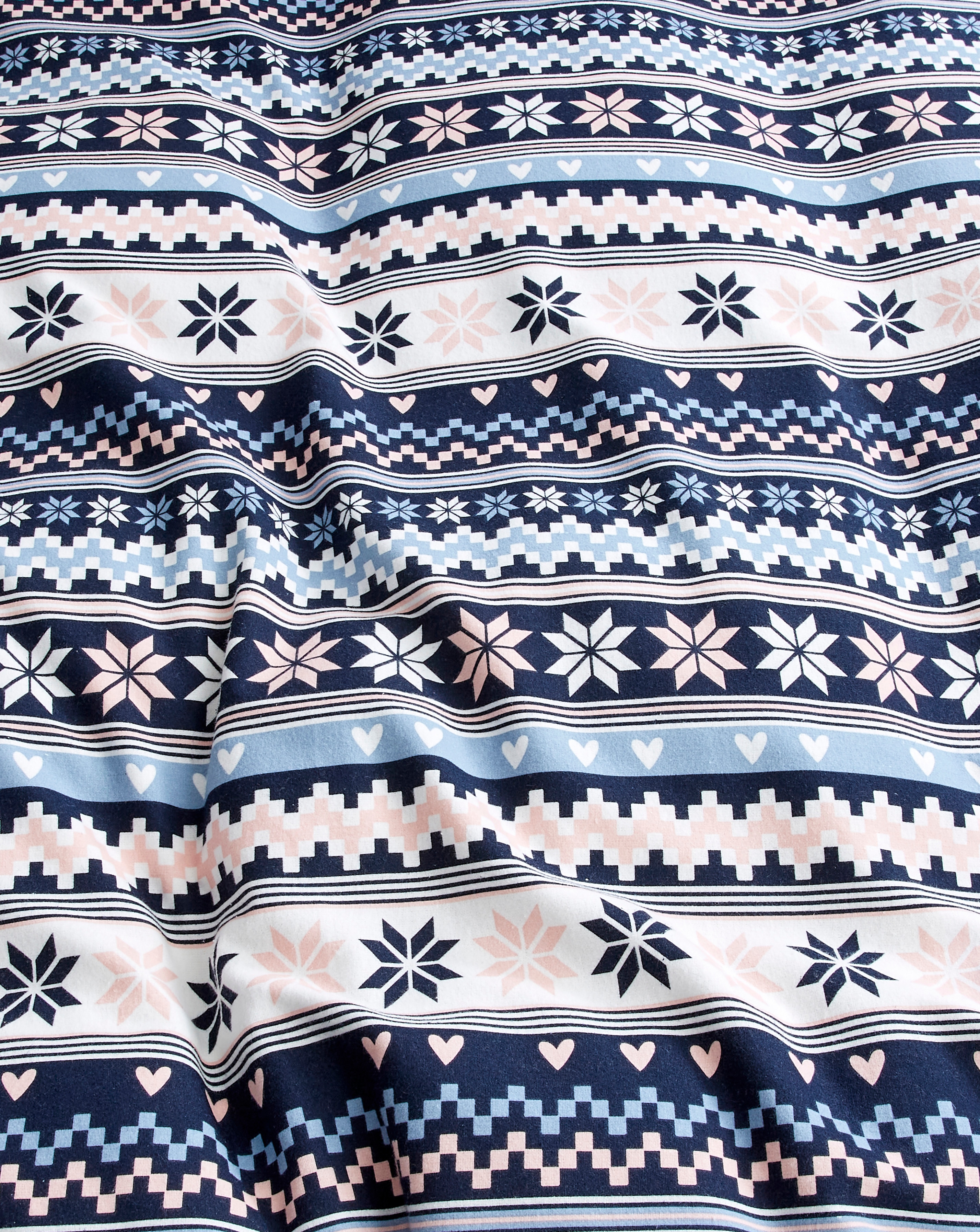The Laurie Fairisle Brushed Cotton Duvet Set brings the charm of winter cabins straight to your bedroom. Crafted from ultra soft 100% brushed cotton, it offers warmth, breathability, and a gentle, velvety feel that's perfect for colder nights. Set includes One Duvet cover and 2 Pillowcases. 100% Cotton. Machine wash on 40 Degree, Do Not Bleach, Tumble Dry on low heat, Iron on Low Heat, Do not Dry Clean.