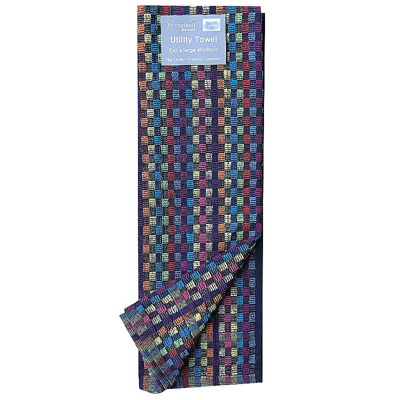 Sure to brighten up your kitchen with their multi-coloured checked pattern, this set of 2 super-absorbent, hard-wearing, extra-large tea towels will get more of your dishes dry without ending up wringing wet. Lightweight & quick drying Plush & absorbent Set of 2 Machine washable Tumble dry 100% Cotton Size approx. 45 x 90 cm