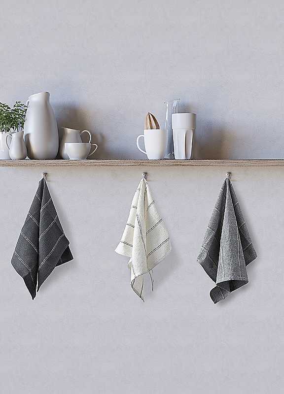 Le Chateau Set of 3 Grey Waffle 100 Cotton Tea Towels
