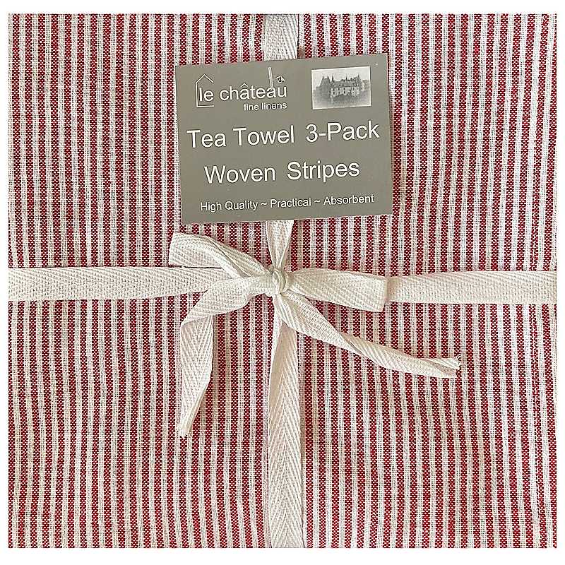 Le Chateau Set of 6 Red Woven Stripe Tea Towels