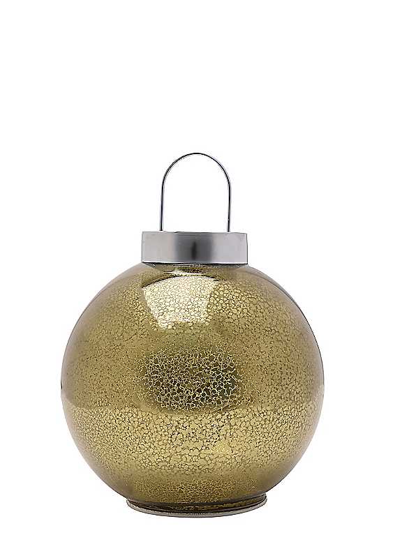 This LED Light Up Glass Bauble Decoration is designed to impress. It can be hung or displayed standing thanks to its flat base. A timeless piece for any home. Features LED function which will brighten up any corner of your home.Indoor use onlyRequires 3 x AA batteries (not included)Dimensions approx. 12.5H x 9W x 9D cm | small christmas ornaments, round christmas ornaments, gold christmas decor, glass christmas ornaments, light up christmas ornaments