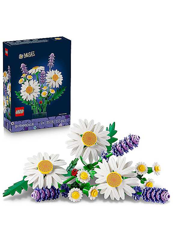 Let young imaginations blossom with the LEGO Botanicals Daisies (11508) artificial flower building set for 9+ year old girls and boys. Flower lovers will have lots of fun creating the sweet faux flower bouquet, which includes 3 large artificial daisies, 2 stems of small daisies, 3 calming sprigs of lavender and vibrant green stems. Offering a balance of cheerfulness and tranquillity, the petite LEGO bouquet features highly realistic flowers and an adorable lucky ladybird on one of the lavender stems, a cute addition that's sure to delight young builders. Once it's complete, kids can show off their LEGO daisies proudly as aesthetically pleasing bedroom or desk decor that will never wilt or need to be watered. A thoughtful gift for 9+ year old girls, boys and teens on birthdays and other special occasions, as well as a fun housewarming gift for nature lovers, this LEGO flower bouquet can be treasured forever by flower fans of all ages.BOTANICAL COLLECTION - Build more blooms with other sets (sold separately) from the LEGO Botanicals range, including roses, bonsai trees, potted plants and more.Age suitability: 9+ yearsARTIFICIAL FLOWER DECOR - Encourage kids' love of nature with this LEGO Botanicals Daisies set, a flower building toy for 9+ year old girls & boys.LEGO FLOWER BOUQUET - Budding florists will enjoy building 3 large artificial daisies, 2 stems of small daisies, 3 calming lavender sprigs & green stems for a vibrant floral arrangement.COLOURFUL FAUX FLOWERS - Build a colourful LEGO flower bouquet featuring realistic daisies & lavender, complete with a charming ladybird figure for extra floral charm.HOME DECOR - Once kids have enjoyed building the decorative faux flowers, they can arrange them (vase not included) & display them proudly as bedroom or desk decor.FLORAL GIFT IDEA FOR ALL AGES - This building set makes a fun birthday gift for 9+ year old girls & boys, as well as for flower-loving adult fans.BOTANICAL COLLECTION - Grow your display by building more blooms from the LEGO Botanicals range (sold separately), including roses, bonsai trees, potted plants & more.WARNING! Choking hazard. Small parts. | flower puzzle, lego puzzle