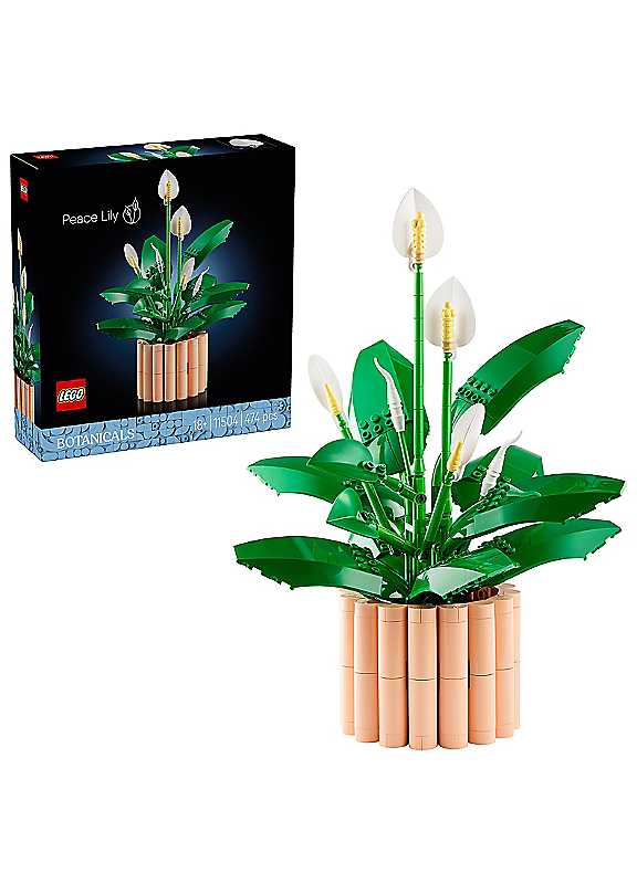 Enjoy a harmonious craft project with the LEGO Botanicals Peace Lily (11504) artificial plant building set for adults, which lets nature lovers create a colourful piece of home decor. Feel your creativity unfurl as you craft the DIY LEGO Peace Lily, which includes lilies in 3 stages of life: discover 2 buds, 2 partially open flowers and 2 flowers in full bloom. Marvel at the lifelike artificial flowers before discovering fun details, including a recoloured carrot for the shape of the spadix on the half-bloomed lily and a popcorn piece at the top of the spadix of the lily in full bloom. Displayed in a peach-coloured plant pot, the LEGO Peace Lily becomes a gorgeous piece of flower decor that will bring a touch of tranquillity to any room. A thoughtful floral gift idea for women and men to celebrate birthdays, housewarmings, or any special occasion, this flower building set is available in the LEGO Builder app, where budding florists can zoom, rotate and track their progress.PLANT DECOR - Once the build is complete, you can display the LEGO flowers as a piece of floral home decor that brings a touch of nature to a bedroom or living room.FLOWER GIFT FOR ADULTS - This flower decor set makes a thoughtful birthday gift or colourful housewarming present for women and men who are nature lovers.BUILD TOGETHER - The arts and crafts kit for adults includes 2 sets of instructions, so you can bond over blooms while building the LEGO display with a friend or loved one.Age suitability: 18+ yearsFLOWER DECOR - Create flowers that last forever with this LEGO Botanicals Peace Lily DIY building set for adults, an immersive craft project suitable for flower & LEGO enthusiasts.ARTIFICIAL FLOWERS TO BUILD - Create 6 peace lilies in different stages of bloom, from furled buds to partially & fully opened flowers, inspired by real botanical beautyLEGO BOTANICALS SET FOR FAUX FLOWER FANS - This colourful model kit for adults is a fun DIY project to enjoy with friends or family; the pot is also interchangeable with the one from the Orchid 10311 (sold separately)HOME DECORATION - Proudly display your artificial peace lilies with the stand as a timeless, nature-themed piece of home or office decor that brightens up any spaceFLOWER GIFT FOR ADULTS - This LEGO flower building set makes a unique, long-lasting birthday gift or housewarming present for women & men who love nature.A HELPING H& - Digital instructions for this artificial plant set are available in the LEGO Builder app, where budding florists can save sets & track their progressWARNING! Choking hazard. Small parts. | flower puzzle, lego puzzle box, lego puzzle