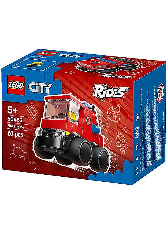 Spark fun firefighting adventures with the LEGO City Rides - Fire Engine (60482) mini building kit for kids aged 5 and over. This pocket-sized, buildable toy fire engine is a great introduction to the creative world of LEGO City and comes with features kids will love, including chunky rubber tyres and a raisable fire ladder. The set includes a LEGO City Rides firefighter junior minifigure that fits perfectly in the driver cab for pretend play.Part of the LEGO City Rides range, this small fire engine toy is ideal for young builders. Whether as a birthday surprise or anytime treat, it's perfect as a small gift for boys, girls and kids who love car toys and imaginative play. Combine it with other LEGO City sets (sold separately) to expand the fun.With this LEGO City Rides - Fire Engine playset, kids can enjoy intuitive building with the LEGO Builder app, zooming and rotating with 3D instructions, while saving and tracking progress - all from the app. Set contains 67 pieces.Make the creative experience extra fun with the LEGO Builder app.Add this toy vehicle set to others (sold separately) from the LEGO City range.The toy emergency vehicle in this 71-piece playset is over 8 cm (3 in.) long.Age suitability: 5+ yearsLEGO City Rides Fire Engine playset for kids aged 5 & overMini building kit with a toy fire engine & driver minifigureIconic design with chunky rubber tyres & raisable ladder for imaginative playLEGO City Rides firefighter junior minifigure for fun rescue missionsSmall gift or anytime treat for boys, girls & kids aged 5 & overWARNING! Choking hazard. Small parts. | lego board games, car puzzle, puzzle toy, lego puzzle