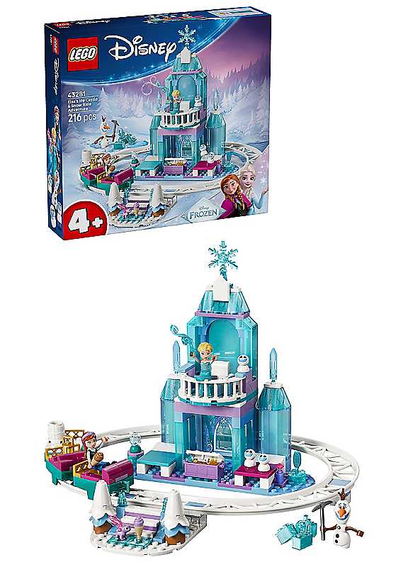 Treat young fans to this LEGO & Disney Frozen Elsa's Ice Castle & Snow Ride Adventure (43281) building toy for 4+ year old girls and boys. Spark play with 7 LEGO & Disney Frozen figures: Elsa, Anna, Olaf, Bruni and 3 Snowgies, plus a 2-level castle toy with throne room, balcony, 2 beds and a kitchen. There's also a separate train track with a staircase and 3 sleigh carts that any of the included characters can ride in.Meet a child's love for Disney's Frozen with a castle building toy that is a fun birthday gift idea for 4+ year old girls and boys, and works with other LEGO & Disney building sets (sold separately). Five Starter Brick elements included in this Disney Princess building toy help give kids a sturdy start, and each bag of bricks has 1 buildable model and a character so play starts fast.Along with simple pictorial instructions for kids just learning to read, there is an easy, intuitive building adventure on the LEGO Builder app for zooming and rotating with 3D instructions, and saving and tracking progress.DIGITAL INSTRUCTIONS - The LEGO Builder app guides kids on an intuitive adventure where they can save sets, track progress and zoom in and rotate models using 3D instructions.Age suitability: 4+ yearsFROZEN CASTLE TOY FOR KIDS - Little ones develop creativity while playing with this fun LEGO Disney Elsa's Ice Castle & Snow Ride Adventure Princess toy for 4+ year old girls & boysPALACE WITH TRACK & SLEIGH - Includes a 2-level toy castle with a throne room, balcony, 2 beds & a kitchen, plus a LEGO train track with a staircase & a 3-cart sleigh7 DISNEY FIGURES & ACCESSORIES - Includes Elsa & Anna mini dolls, Olaf, Bruni & 3 Snowgies, plus a snow globe, lantern, 2 ice cream cones & an opening chest with a crown & sceptre.EDUCATIONAL TOYS - Kids can work on their fine motor skills development as they build the castle on the 5 included LEGO starter brick elements, plus each bag of bricks contains 1 model & a characterDISNEY GIFT FOR KIDS & FANS - A great holiday or birthday gift for 4+ year old girls & boys who love model castles, the Frozen movies & Disney princess toysWARNING! Choking hazard. Small parts. | frozen puzzle, puzzles for 4 year olds, party games for 4 year olds, lego puzzle, disney puzzle, board games for 4 year olds, lego board games