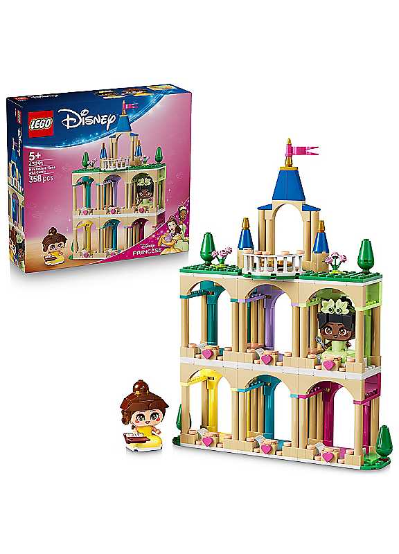 Share a love for Disney Princess characters with young fans with this LEGO & Disney Princess Mini Belle & Tiana with Castle toy for 5+ year old girls and boys (43291).This Disney Princess toy features small Belle and Tiana mini dolls that help inspire storytelling play with the included book and spoon accessories. Each Disney figure has movable arms and can hold an accessory. The buildable toy castle features 3 levels and includes colour-coordinated spaces for each character in the collectible series. The centre tower has a spinning turntable to display any of the Disney Princess mini dolls. Fulfil a child's love for Disney Princesses with a building toy that makes a great birthday gift idea for 5+ year old girls and boys. The set makes a fun piece of kids' room decor and works with other LEGO & Disney building toys, all sold separately. Kids also get an easy, intuitive building adventure on the LEGO Builder app for zooming and rotating with 3D instructions, saving and tracking progress.Age suitability: 5+ yearsPRINCESS CASTLE TOY - Treat young fans to the LEGO Disney Mini Belle & Tiana with Castle, a magical Princess toy for 5+ year old girls, boys & older fans3-STOREY PALACE - The castle model features colour-coordinated spaces to showcase 6 figures, plus the centre tower has a spinning turntable for kids to place a LEGO mini doll2 LEGO DISNEY FIGURES - This Princess toy for kids includes a brick-built Belle figure with a book & Tiana with a cooking spoon; each mini doll has a large head & movable armsDISNEY DISPLAY CASE - Kids can display the Disney figures along with those found in 43284 Mini Anna & Elsa & 43303 Mini Jasmine & Rapunzel (sets sold separately) for a magical girls' bedroom decor pieceDISNEY GIFT FOR KIDS & FANS - This LEGO building set makes a great gift idea for 5+ year old girls, boys & older collectors to enjoy on birthdays or any special occasionWARNING! Choking hazard. Small parts. | puzzle toy, lego puzzle, disney puzzle