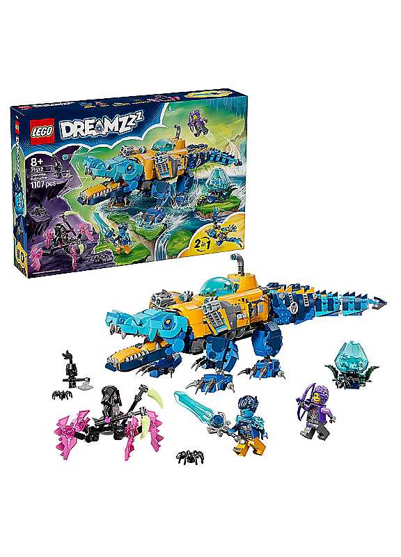 Kids can unleash creativity with the LEGO DREAMZzz 2-in-1 Crocodile Submarine toy for 8+ year old boys and girls (71512). This fun building set offers 2 action-packed options, letting dreamers build the submarine toy into a crocodile or flying eagle toy.The toy submarine has dual shooters and a hidden compartment, plus a cockpit that fits a LEGO minifigure. In crocodile mode it has a posable head, legs and tail, and in eagle mode, it has posable wings and wing feathers that extend from boosters. Logan, Zoey and Arika LEGO DREAMZzz minifigures, plus a Grimspawn figure, 2 toy spiders and a collectible Blue Treasure Creature figure, encourage imaginative role play. Logan comes with a blue sword, while Zoey has a bow and Arika has a scythe.A great birthday gift for 8+ year old boys and girls, this set comes with story-led building instructions so kids can immerse themselves in the adventure. These are also available digitally in the LEGO Builder app, where builders can zoom, rotate and track progress.FANTASY PLAYSET WITH ACCESSORIES - All 3 minifigures come with collectible toy sword accessories in colours that suit their characters and there's a diamond egg that hatches the treasure creature.Age suitability: 8+ yearsFANTASY SUBMARINE TOY FOR KIDS - Kids can dive into a new pretend-play adventure & unleash their imaginations with the LEGO DREAMZzz 2-in-1 Crocodile Submarine toy for 8+ year old boys & girls1 SET, 2 BUILDING OPTIONS - Using the same bricks, kids can choose to build a crocodile submarine toy with a posable head, legs & tail or an eagle submarine with posable wingsACTION TOYS - The crocodile submarine toy & flying eagle submarine toy are both equipped with dual boosters with side-mounted shooters & hidden compartments on each side3 LEGO MINIFIGURES - Heroes Logan & Zoey & villain Arika, plus 2 toy spiders, a collectible Blue Treasure Creature figure & a Grimspawn figure bring the action to lifeGIFT IDEA FOR KIDS - Makes a fun gift idea for kids' birthdays or an anytime treat for 8+ year old boys, girls & LEGO DREAMZzz fans & can be used as bedroom decor once playtime is overWARNING! Choking hazard. Small parts. | puzzle toy, lego puzzle