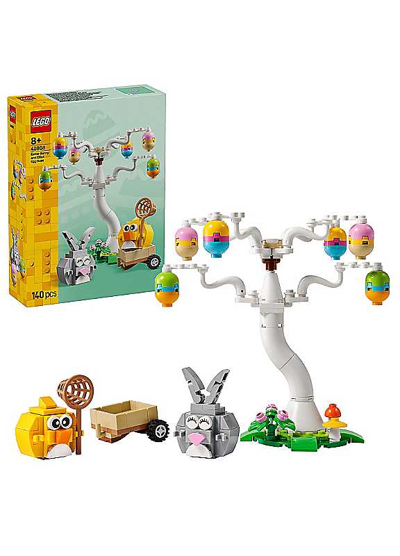 Celebrate spring holidays with an animal toy for 8+ year old girls and boys and create a colourful home decor piece that will brighten up any room. This LEGO Easter Bunny and Chick Egg Hunt (40808) building toy inspires family building moments and creative role play for kids, while making a warm and playful animal figure for a fun display in any home. With this building set, kids, assemble the tree, wagon, LEGO bird toy and rabbit toy, then build and attach the brightly coloured eggs to the tree branches for the animals to find. Help the chick and Easter Bunny collect the eggs using the net and store them in the wagon. This building set makes a fun Easter gift for 8+ year old girls, boys and spring holiday lovers, and it's an ideal set for family or friends to build together. Use the instructions or unleash your own imagination and creativity to invent your own unique seasonal design. When you've finished building it, display your springtime creation in your home or office. LEGO EASTER SET - Surprise an animal-loving kid with this cute LEGO Easter Bunny and Chick Egg Hunt building toy for 8+ year old girls and boys which makes an eye-catching display for any room ANIMAL TOYS - The building set includes 2 brick-built animal figures, a mischievous Easter Bunny rabbit toy and a bright-eyed LEGO bird to decorate the tree and collect the eggs EASTER DECOR - Encourage family building fun and brighten up any space with a tree in a meadow with flowers and mushrooms, ready to hold and display all the colourful Easter eggs EASTER CRAFTS KIT - Accessories, including 6 buildable eggs with elements in a range of colours, a net and a wagon with rolling wheels, help spark storytelling and creative role play EASTER GIFT FOR THE WHOLE FAMILY - This fun spring model kit makes a great holiday or seasonal gift for 8+ year old girls, boys and older animal-lovers, with a colourful display piece to enjoy all year round Age suitability: 8+ years WARNING! Choking hazard. Small parts.