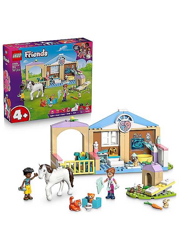 Encourage little ones to build their own stories with the LEGO Friends Animal Vet Clinic (42696) toy for 4+ year old girls and boys. The detailed vet toy playset set is equipped with everything your pre-schooler needs to role-play with and care for the animal figures. There's a toy horse stable, an examination room, pet beds, food, veterinary equipment, a pet playground and more. The educational toy includes Leo and Valeria LEGO Friends mini dolls, plus a horse, a toy dog, a bunny and 2 cat figures. Vet-themed accessories such as a syringe, a thermometer and a clipboard and pen inspire make-believe play. For the horse, there's a saddle, hay, a brush, a carrot, water, horse poo, and a helmet for a rider. This building toy makes a fun gift for pre-schoolers who love animal playsets. LEGO 4+ sets come with helpful quick-start elements - larger pieces that help kids get started. With the LEGO Builder app, kids can enjoy a fun building experience where they can zoom in and rotate sets using 3D instructions and track progress.Age suitability: 4+ yearsEDUCATIONAL PLAYSET - Preschool children will learn about pet care & animal wellbeing with this detailed LEGO Friends Animal Vet Clinic toy for 4+ year old girls & boysEASY TO BUILD - This 4+ set features big elements designed for small hands to helpchildren develop fine motor skills as they build a horse stable, an examination room & a pet playground2 MINI DOLLS & 5 ANIMAL FIGURES - Spark creative storytelling & role play with Valeria & Zac LEGO Friends mini dolls, plus a dog, toy bunny, a horse & 2 cat figures.VET CLINIC ACCESSORIES - This playset includes all the doctor's kit essentials like a stethoscope, a thermometer & medicines as well as veterinary equipment & tasty treats for petsBIRTHDAY GIFT FOR 4+ YEAR OLD GIRLS & BOYS - Treat a young fan of nature & animals to this fun building set, which makes a great gift idea to celebrate birthdays or any other special occasionWARNING! Choking hazard. Small parts. | learning games for newborns, games preschool, learning activities for preschoolers, sensory play activities for infants