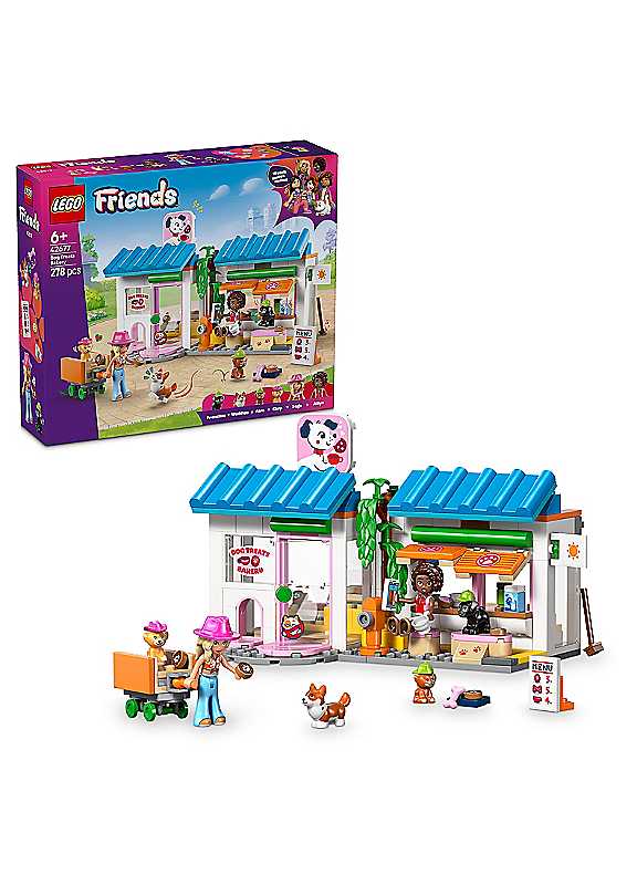 Inspire kids to create their own sweet stories with the LEGO Friends Dog Treats Bakery (42677) toy for 6+ year old girls and boys. The bakery shop toy is packed with animal figures and humorous details and doll's house accessories to delight pet lovers. Discover an oven, coffee machine, refrigerator and seating, plus lots of animal-friendly details like the fun signage, pet carrier and pet door. There's even a ramp to the counter so the pups can get involved in serving customers! This role-play toy comes with 2 LEGO mini dolls, 4 toy dogs and lots of pet accessories for kids to bake up hours of fun. Details include a menu card, doughnuts, biscuits, dog treats, a bone, milk, cups and more. This LEGO bakery set makes a great birthday gift for 6+ year old girls, boys and pet lovers. With the LEGO Builder app, kids can enjoy an intuitive building adventure where they can zoom in and rotate sets using 3D building instructions, save sets and track progress.Age suitability: 3+ yearsBRICK-BUILT PET BAKERY TOY - Unleash storytelling fun for pet lovers with the LEGO Friends Dog Treats Bakery toy for 6+ year old girls & boys, which includes 2 mini dolls & 4 animal figuresPLAY OUT PET STORIES - The animal playset includes a bakery with an oven, coffee machine, refrigerator, seating & a ramp to the counter, so the pups can help serve customers.2 LEGO MINI DOLLS & 4 ANIMAL FIGURES - Comes with Aliya & Sage mini dolls plus 4 toy pet dogs & lots of fun animal-friendly details like a pet door, treats, fun signage & a pet carrierTOY FOOD ACCESSORIES - Role-play elements to feed young imaginations include a menu card, doughnuts, cookies, milk, cups & a bone, plus hats for the characters & their petsGIFT FOR PET LOVERS - This kids' dog bakery building set makes a fun anytime treat or birthday gift for 6+ year old girls & boys who love cute animalsWARNING! Choking hazard. Small parts. | lego board games, animal wooden puzzles, lego puzzle box